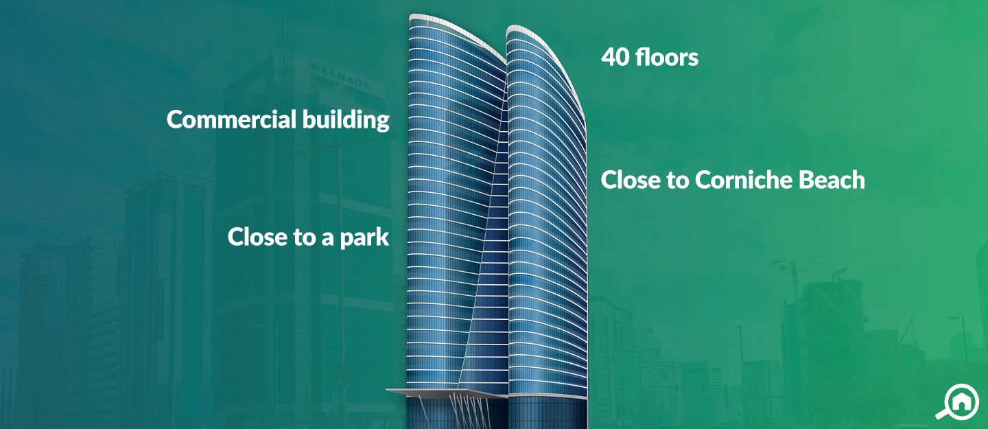Among the buildings listed above, Corniche Plaza Tower and ADCCI are commercial towers. Meanwhile, Obaid Al Khamiri Building is a residential building.