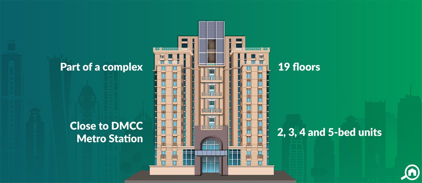 DMCC Metro Station on the Red Line of the Dubai Metro is the closest, within a 5-minute drive. Sobha Realty Metro Station and Al Khail Metro Station are a 10 to 12-minute drive.