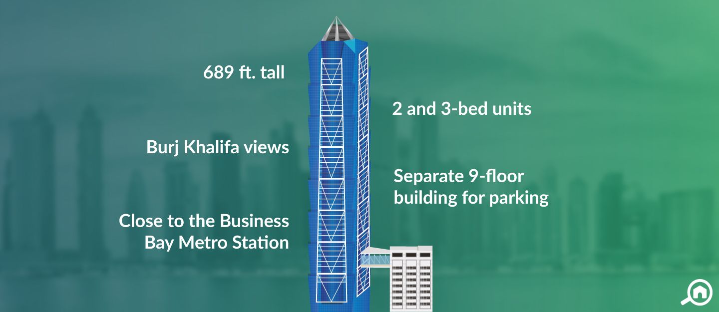 The tower has a separate 9-storey building attached which offers amenities such as a swimming pool, gym, and sauna. Residents have access to covered car parking in the same tower. The building is under CCTV camera surveillance at all times. The project comes installed with elevators. There are malls, schools, supermarkets and parks close to Al Batha Tower, Business Bay. Several hospitals and health centres are also proximal to the building. The project is pet-friendly.