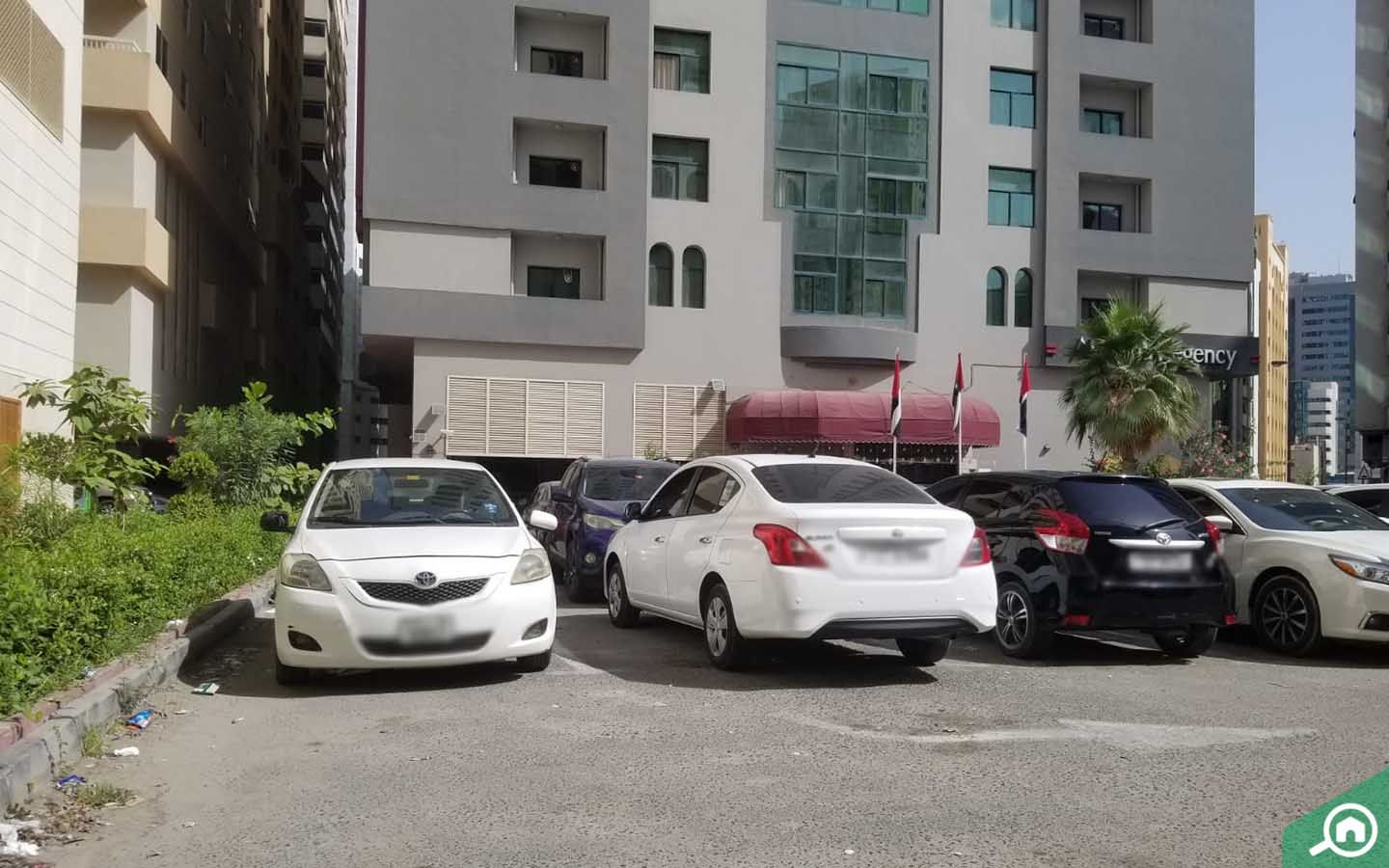 There is covered parking in Al Maha Regency Suites Hotel, Al Qasimia. Visitors will find a paid parking lot right outside the tower.