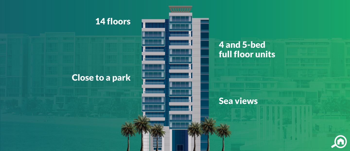 ReadyAl Manara is a residential building located in Al Bandar in Al Raha Beach. It is a project by Aldar Properties and offers beautiful views of the sea and Dubai Marina. The building features luxurious 4 and 5-bedroom penthouses. The tower houses 12 four-bedroom units plus 1 unit of five bedroom penthouse. Amenities in the building include access to swimming pool, gym, a medical centre, basketball, tennis and squash courts.