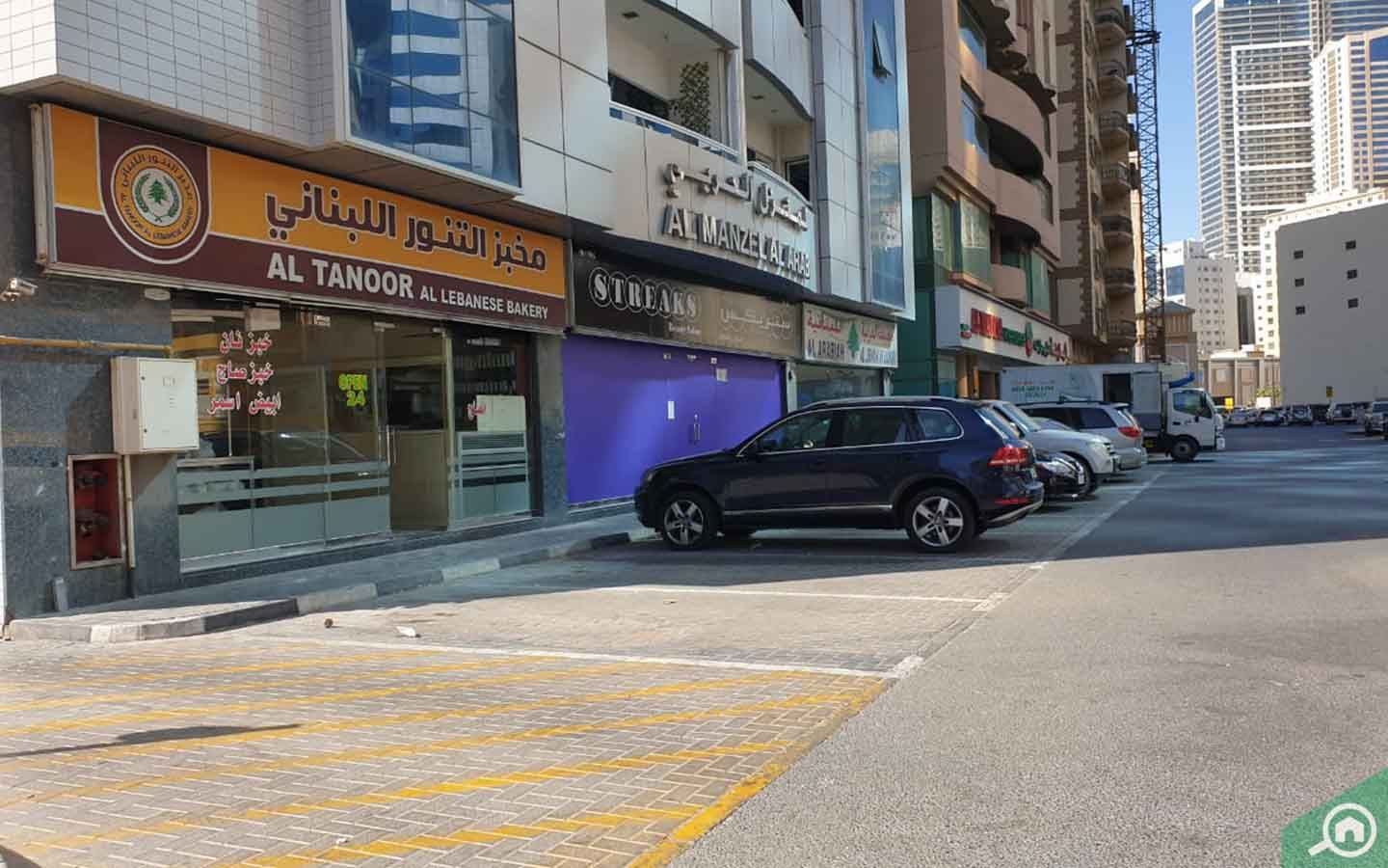 Residents will find many facilities at their disposal, within the building and in the neighbourhood. The ground floor of the building has laundry shops, salons for men and women, a sweet shop, a meat store and a bakery. Travelling to other areas is quite convenient for those with private vehicles. Those relying on Sharjah public transport will find taxis and buses.