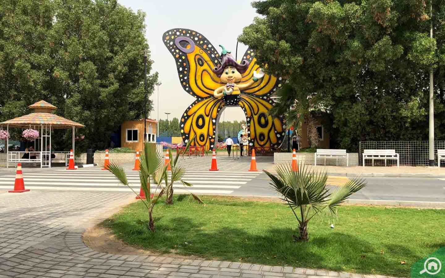 Dubai Butterfly Garden is just a 14-minute drive from Al Ramth 21. The garden has more than 15,000 butterflies that are kept in ten different domes. There is also a Koi pond in the garden where one can find Koi fishes swimming around.
