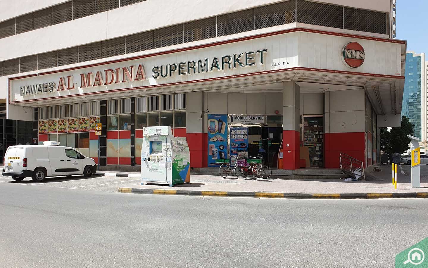 There is Nawaes Al-Madina Supermarket located on the ground floor of the tower. Additional grocery stores nearby include Al Qaisar Supermarket and Al Sham Madinah Supermarket are a minutes away on foot. Another option which offers a good selection of daily use items is Sunrise City Supermarket at a 6-minute walk.