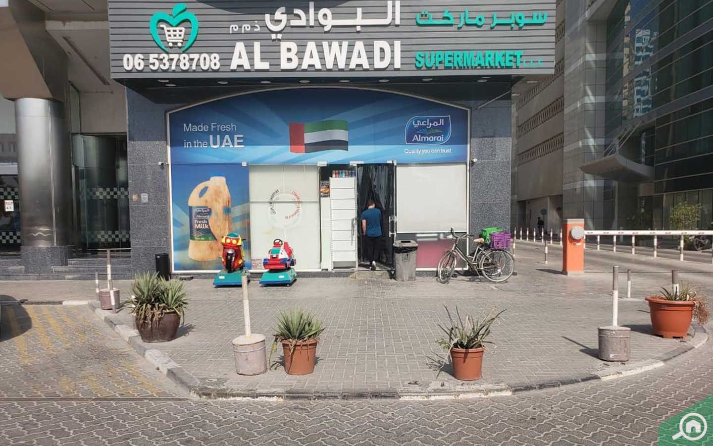 Al Rund Tower has a supermarket named Al Bawadi on its ground floor. Some other supermarkets near Al Rund Tower are: