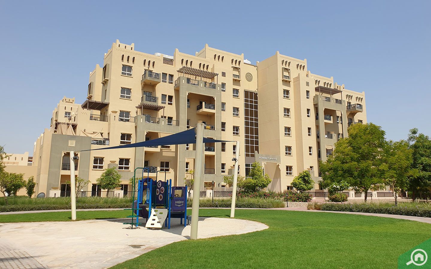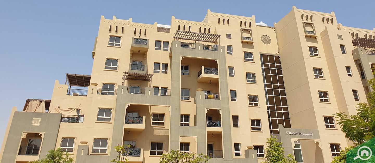 Al Thamam is a cluster of low and high-rise Moorish-style buildings. The quiet, friendly community features parks, walking paths, and shaded open spaces. Other facilities include expansive terraces, swimming pools, lawns or gardens, barbecue stations, and mosques.
