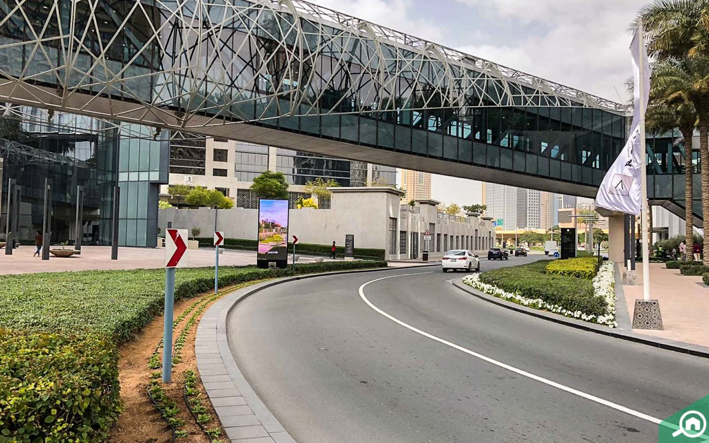 يسهل التنقل من وإلى المشروع نظراً لقربه من شارع الشيخ زايد.