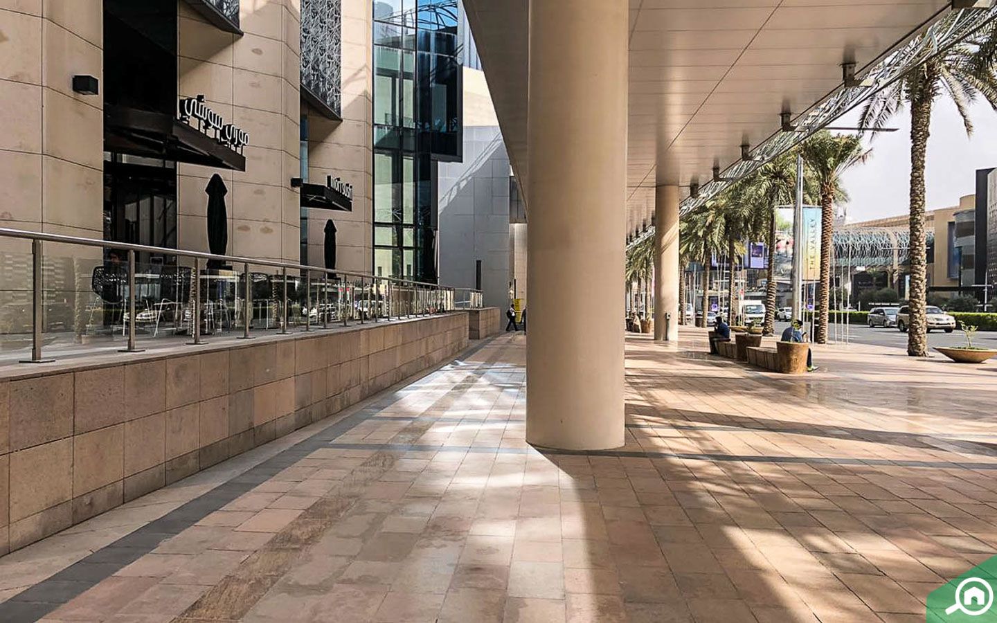 يمكن للموظفين استقلال الباصات من عدة مواقف قريبة مثل موقف محطة مترو دبي مول المحطة البرية D الذي يبعد 5 دقائق بالسيارة، وموقف دبي مول وموقف اتصالات، الوصل اللذان يبعدان 7 دقائق بالسيارة، ويجدر بالذكر أنه يمكن استقلال باص 27 وباص 28 وباص 81 من هذه المواقف.