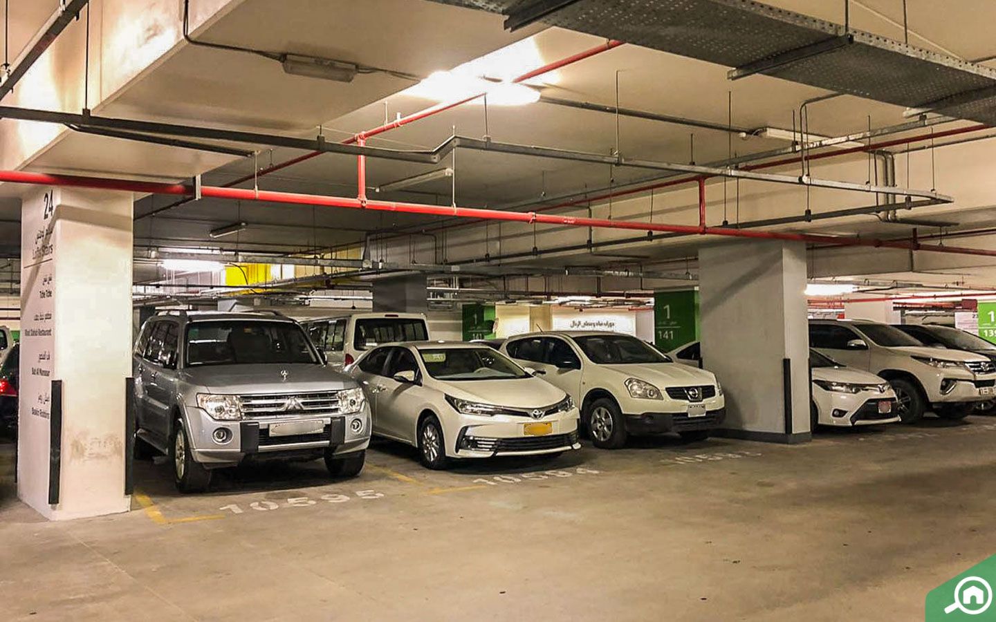 يشتمل المشروع على موقف سيارات مكوّن من ثلاثة طوابق تحت الأرض، ويسمح لكل شقة بصف سيارة واحدة.