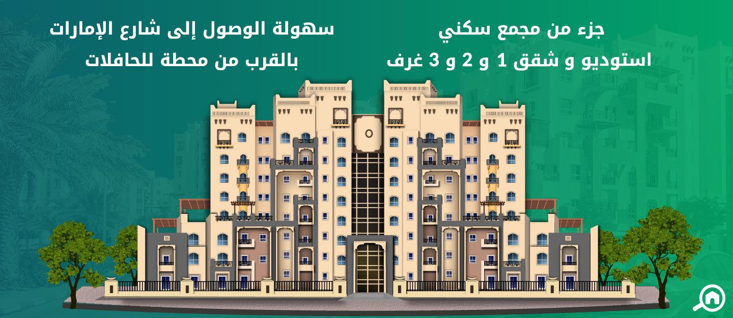 تتراوح مساحة شقق غرفة وصالة بين 666 و1,373 قدم مربع، وتشتمل على مطبخ مفتوح وغرفة معيشة وحمام للضيوف وشرفة أو تراس وغرفة غسيل وغرفة ماستر مع حمام داخلي. يذكر أن بعض الشقق لا تضم شرفات.