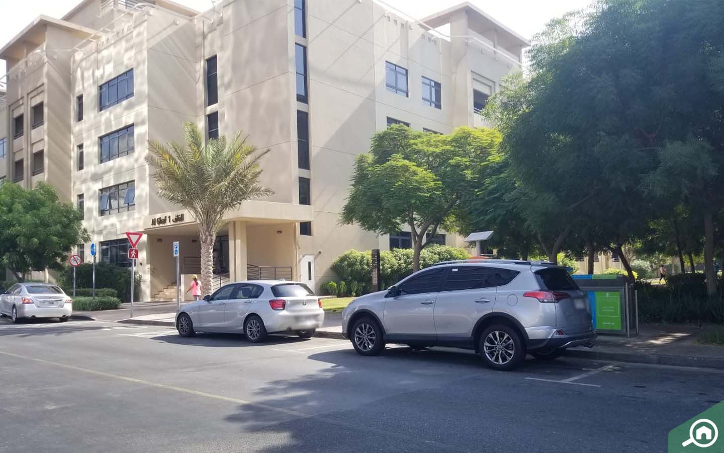 يوفر المشروع مواقف سيارات مظللة للسكان، بحيث يتم تخصيص موقف واحد للشقق الصغيرة، بينما تُمنح الشقق الأكبر موقفين أو أكثر.
