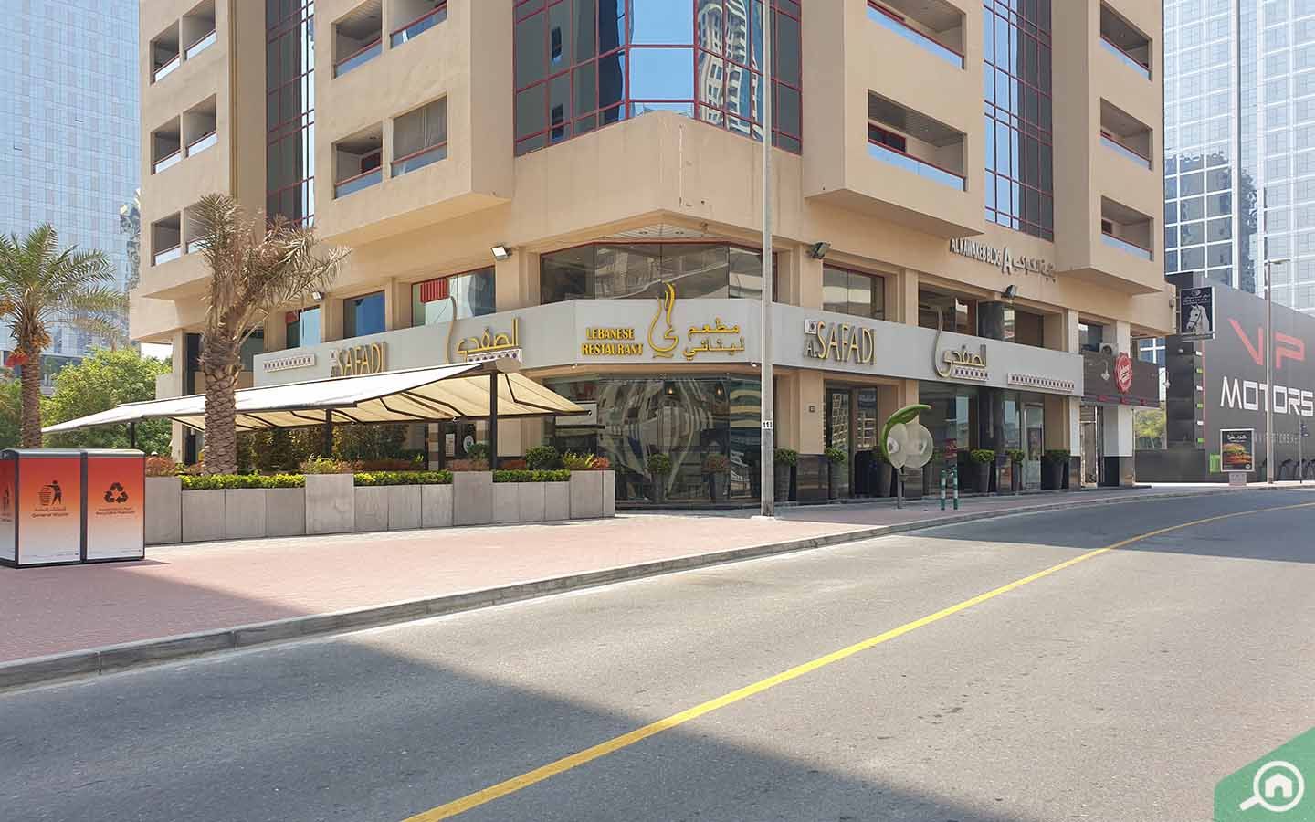يشتمل الطابق الأرضي من المبنى السكني على مطعم الصفدي، الذي يعد من أفضل المطاعم اللبنانية في دبي، هذا ويمكن للسكان زيارة العديد من المطاعم المتوفرة في المناطق القريبة، مثل: