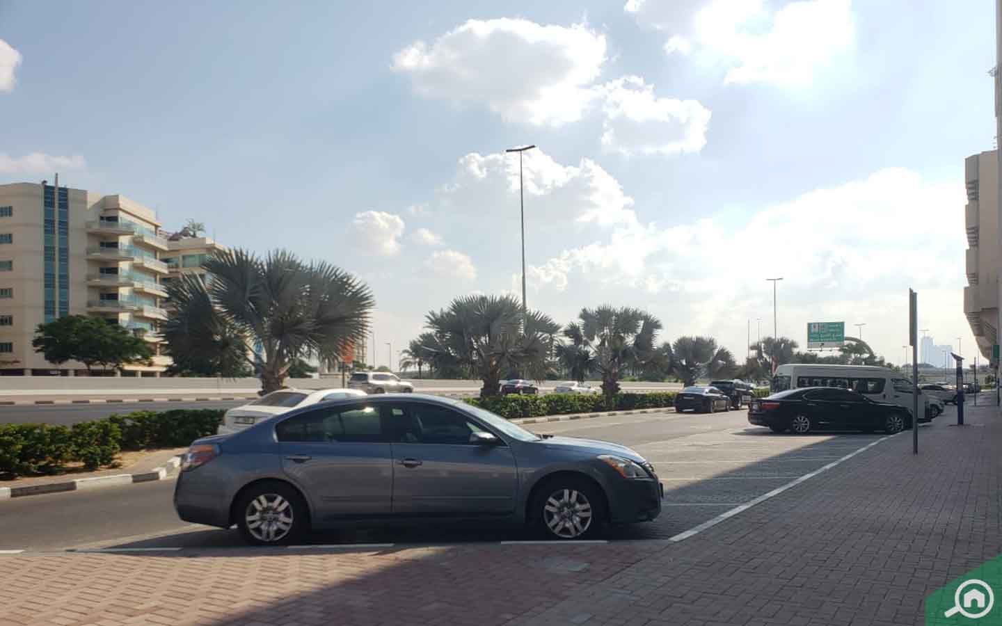 يستطيع السكان صف سياراتهم في الموقف المظلل للمبنى، بينما يمكن للزوار صف سياراتهم في الشارع.