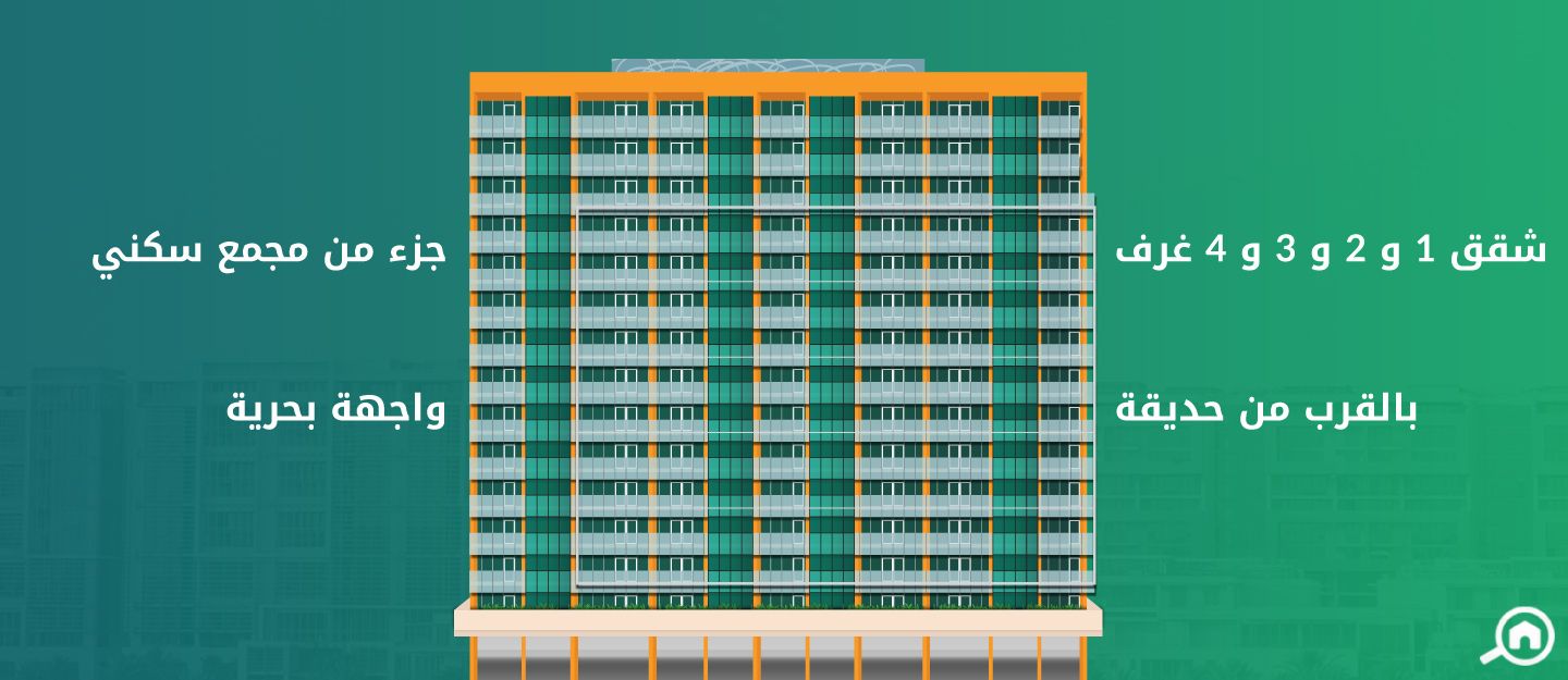 يوفر البرج مواقف سيارات آمنة ومظللة للسكان.