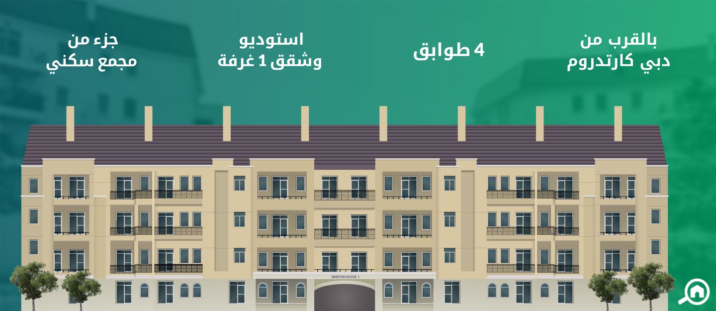 جاهز يعد مبنى بارتون هاوس 1 المؤلف من أربعة طوابق أحد المبنيين التابعين لمشروع بارتون هاوس السكني الكائن في منطقة موتور سيتي في إمارة دبي.