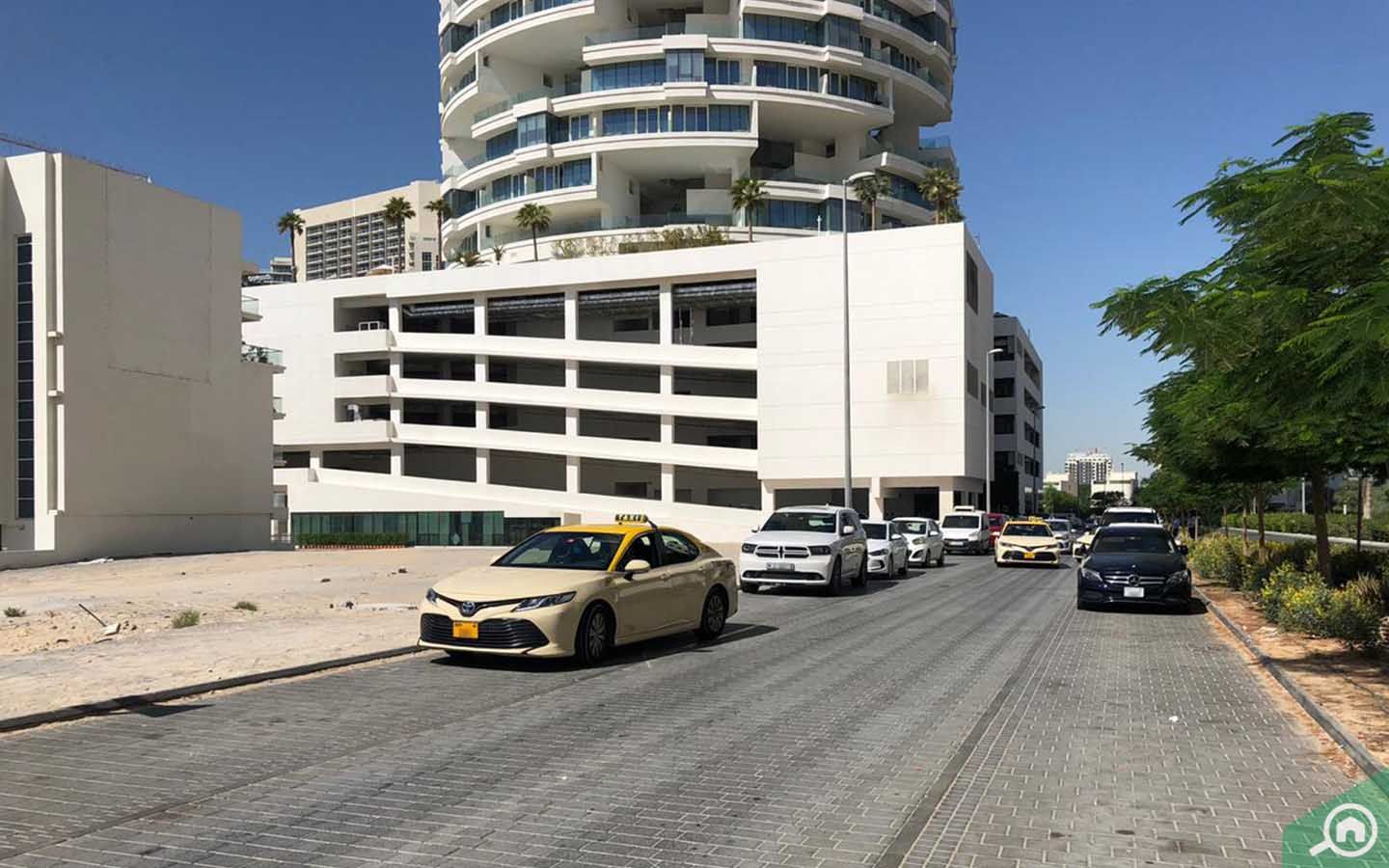 يوفر المبنى موقف سيارات مخصص للمقيمين في الطابق الأرضي، ويتم تخصيص مساحة تتسع لسيارة واحدة على الأقل لكل وحدة سكنية، بينما يمكن للضيوف والزوار صف سياراتهم في المساحات المفتوحة المتواجدة خارج المبنى.