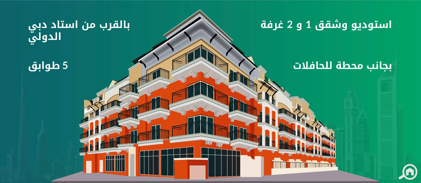 يقع المبنى بالقرب من مدينة دبي الرياضية وموتور سيتي والبرشاء ومثلث قرية الجميرا.