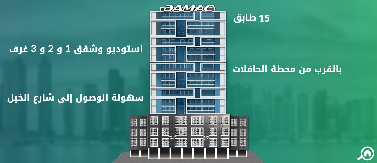 يوفر البرج عقارات متنوعة تتضمن شقق استوديو و شقق غرفة وصالة و شقق غرفتين وصالة و شقق ثلاث غرف وصالة، بالإضافة إلى مساحات تجارية في الطابق الأرضي. فيما يلي تفاصيل الشقق فيه: