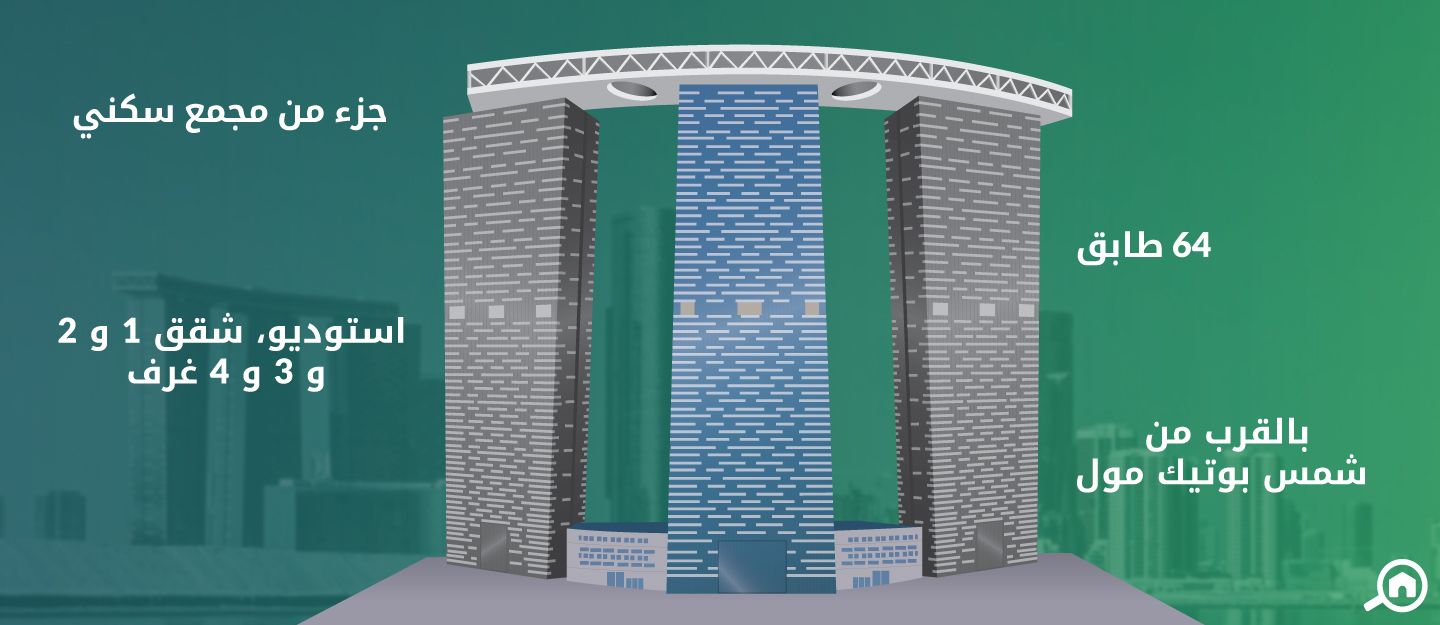 • يوفر 832 شقة تشمل وحدات استوديو وشقق 1 و2 و3 و4 غرف