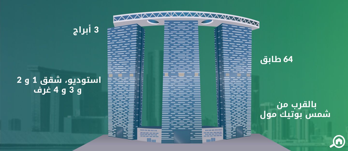 جاهز يعد كل من برج البوابة و برج القوس مشاريع ضخمة ومميزة منجزة من قبل شركة الدار العقارية، ويتكون برج البوابة من ثلاثة أبراج تدعى برج البوابة 1 و برج البوابة 2 و برج البوابة 3 وترتبط جميعها بجسر معلق، وتشترك بالطوابق الأرضية الثلاثة والطابق الأول وطوابق البوديوم الخمسة (منصة استنادية) بالإضافة إلى بناء ضخم بتصميم مقوس يدعى برج القوس، هذا ويقع شمس بوتيك مول بين أبراج البوابة الثلاثة وبرج القوس.