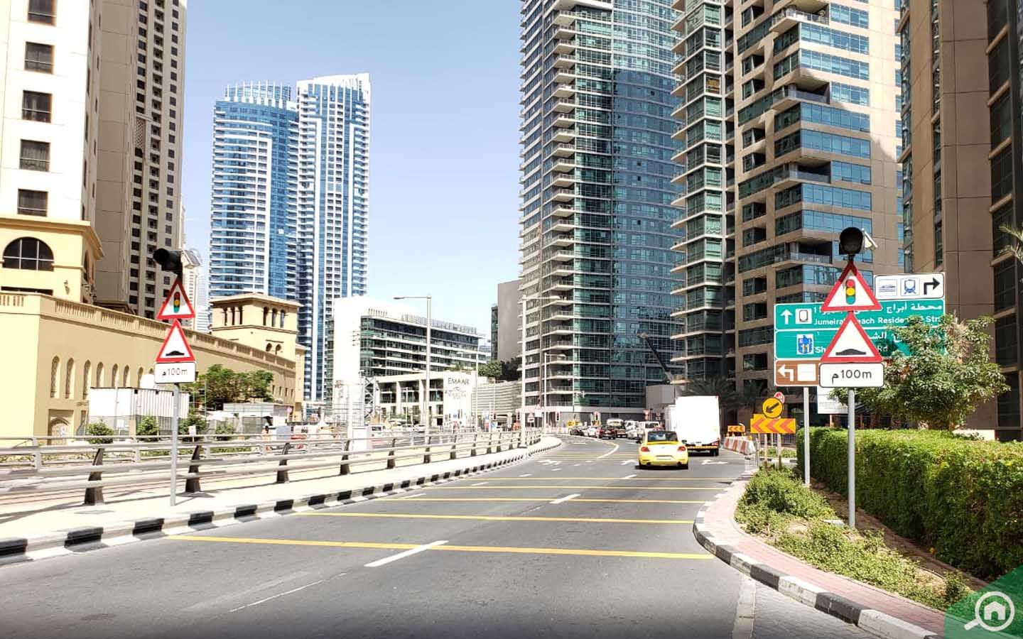 لاستقلال ترام دبي، يجب الذهاب إلى محطة أبراج شاطئ جميرا 2 الكائنة على بعد 6 دقائق بالسيارة.