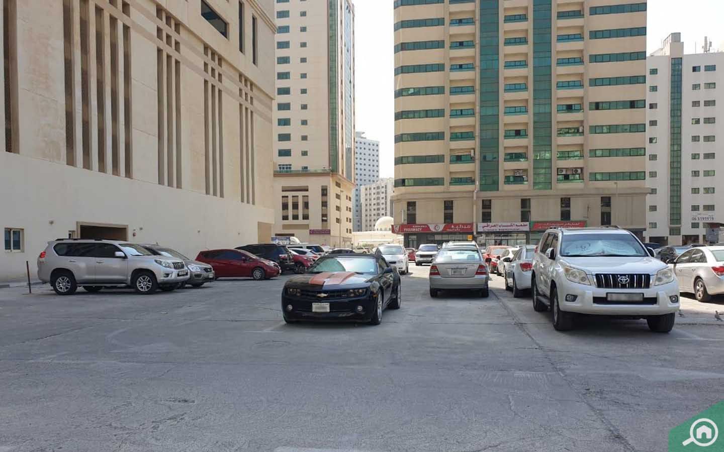 يضم البرج 5 منصات مخصصة لمواقف سيارات المقيمين، ويمكن للزوار العثور على مواقف سيارات في الشارع.