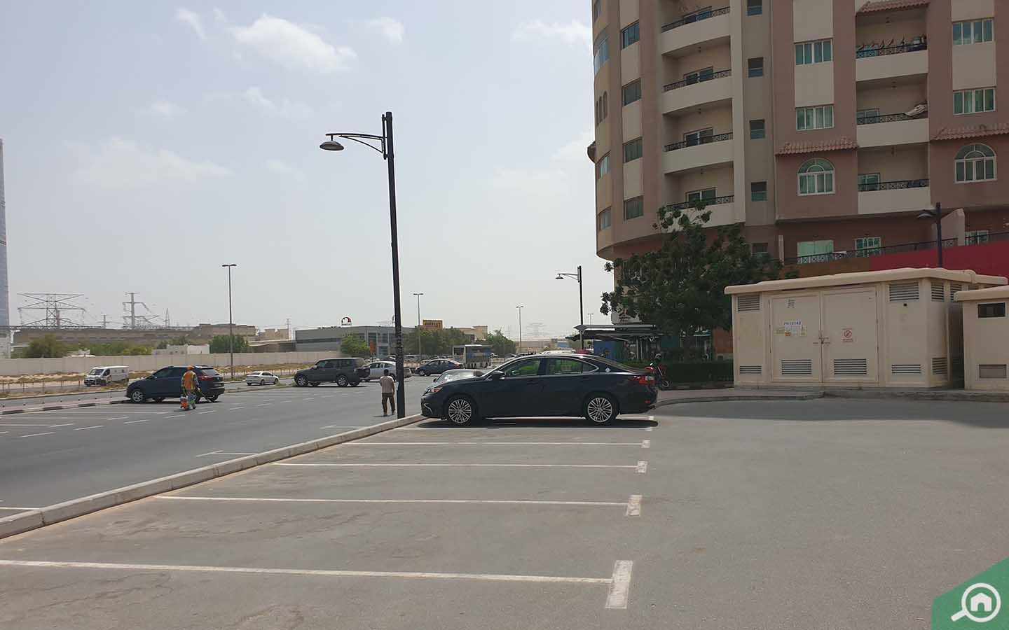 يضم المبنى طابق مخصص لمواقف السيارات للمقيمين في الوحدات السكنية، كما يمكن للسكان والزوار صف سياراتهم في الشارع.