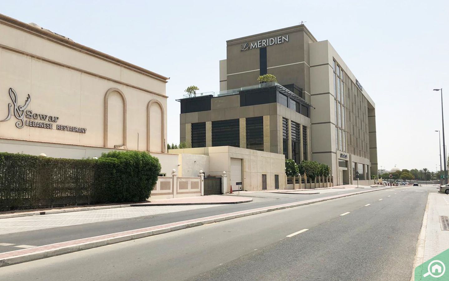 يستطيع السكان الذين يملكون سيارات خاصة التنقل إلى مختلف أرجاء الإمارة بسهولة. تعتبر سيارات الأجرة وسيلة النقل العام الشائعة في المنطقة نظراً لصعوبة الوصول إلى محطات المترو ومواقف الباصات مشياً على الأقدام.