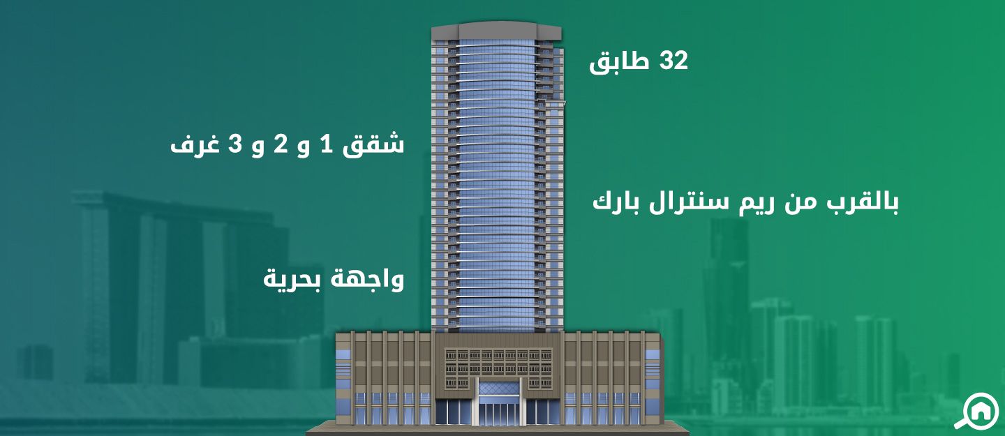 يوفر البرج شققاً سكنية مميزة تتراوح مساحتها بين غرفة و3 غرف وصالة.