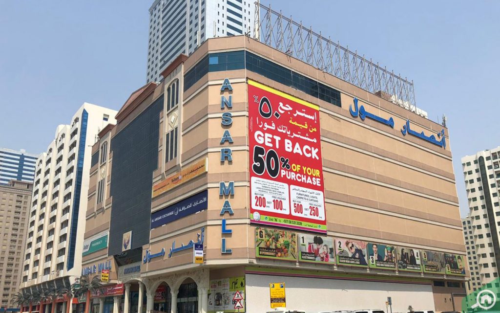 يتكون أنصار مول التجاري من 6 طوابق تضم مجموعة متنوعة من المتاجر الشهيرة؛ مثل: محلات الأزياء والملابس ومحلات الأثاث والأجهزة المنزلية ومحلات المنتجات الإلكترونية، بالإضافة إلى متاجر السوبر ماركت الكبيرة التي توفر الخضار والفواكه واللحوم وغيرها من الأطعمة، كما يضم العديد من المطاعم والمقاهي المتنوعة. يُعد أنصار مول مركزاً مناسباً لاصطحاب الأطفال؛ حيث توجد منطقة لعب مخصصة لهم للاستمتاع بوقتهم أثناء التسوق.