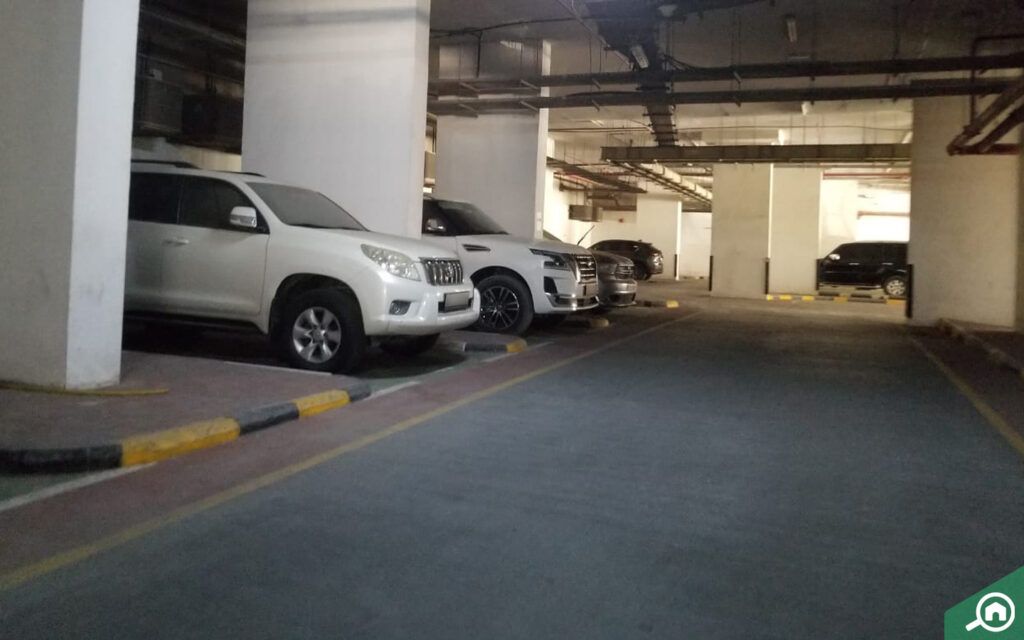 يضم البرج مواقف سيارات واسعة ومظللة مخصصة للمستأجرين، كما يستطيع الزوار صف سياراتهم على الشارع الخارجي بالقرب من البرج.