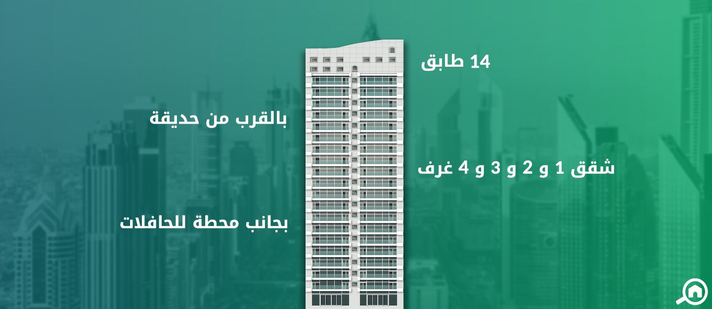يتناسب البرج مع الأفراد والعائلات الصغيرة والمتوسطة وكذلك الكبيرة؛ حيث يضم مجموعة متنوعة من الشقق التي تتكون من غرفة وصالة وغرفتين وصالة، بالإضافة إلى شقق ثلاث غرف وأربع غرف وصالة، وتتمتع جميع شقق للايجار في شارع الشيخ خليفة بن زايد بنوافذ كبيرة توفر إطلالات رائعة على الحديقة والبحر، بينما تحتضن شقق أربع غرف وصالة في البرج غرف مخصصة للخادمة.
