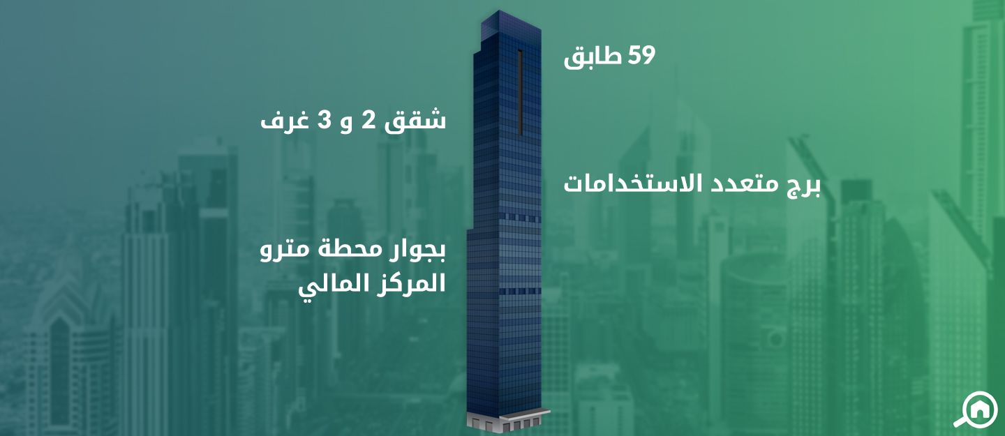 يتألف البرج من 59 طابقاً، تم تخصيص 31 طابقاً منها للمساحات المكتبية، بينما يشتمل 25 طابقاً على وحدات سكنية، تتنوع بين شقق غرفتين وصالة وشقق 3 غرف وصالة، الى جانب ذلك، يضم البرج 3 طوابق مخصصة لوحدات البنتهاوس الفاخرة، في حين تتوزع مواقف السيارات على 9 طوابق منفصلة.