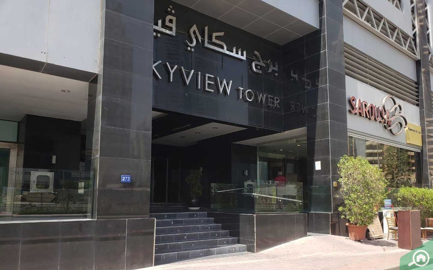 يتمتع سكان برج سكاي فيو بإطلالة بحرية مميزة.