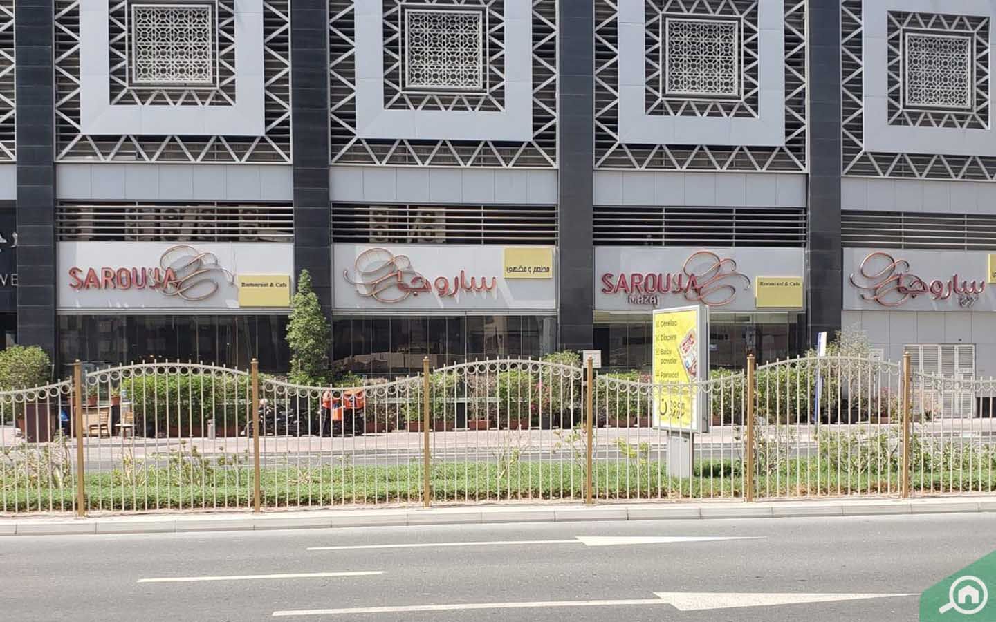 يتربع مطعم ساروجا على قائمة أشهر المطاعم السورية في دبي، ويقع في الطابق الأرضي من البرج ويقدّم تشكيلة واسعة من المأكولات السورية. هذا ويستطيع السكان الوصول بسهولة إلى الخيارات التالية: