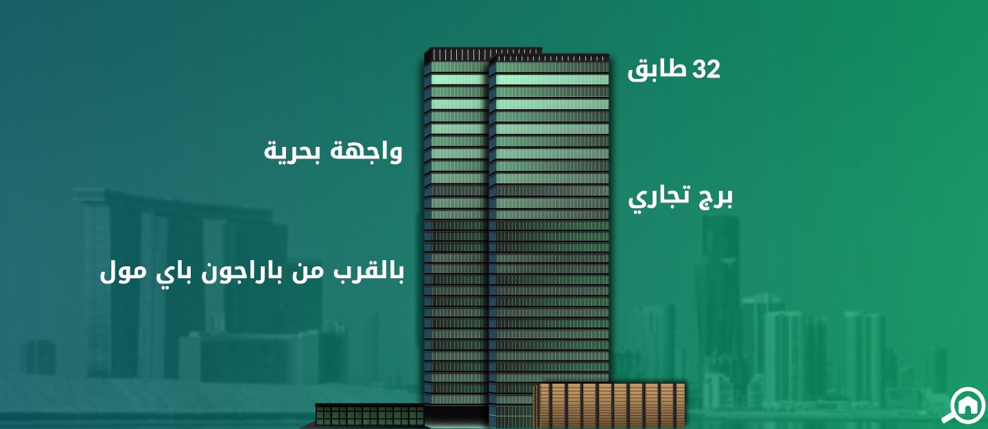 يعتبر البرج جزءاً من مشروع مارينا سكوير السكني، ويقع بالقرب من أبراج سكنية وتجارية وفنادق مثل: