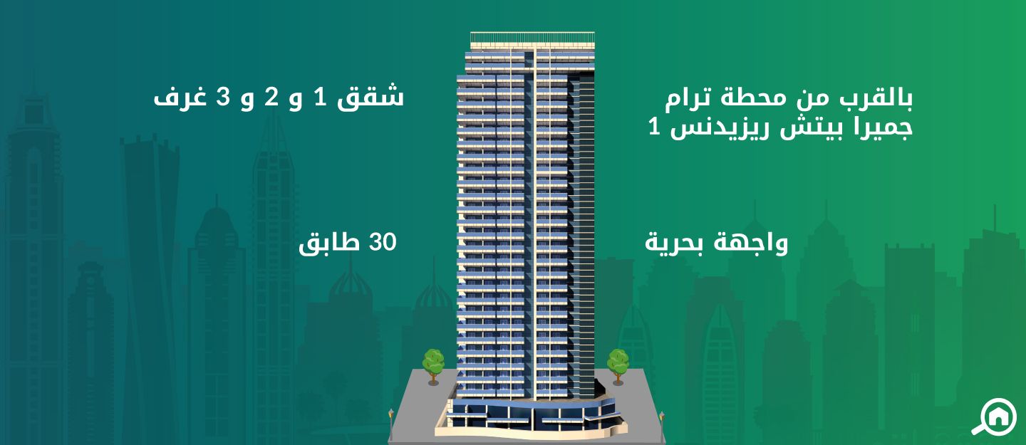 يضم البرج عقارات تملك حر وعقارات للايجار تتنوع بين شقق غرفة وصالة و شقق غرفتين وصالة و شقق ثلاث غرف وصالة و شقق دوبليكس، كما يضم طابق مخصص لأغراض الصيانة وأربعة طوابق بوديوم (منصة استنادية). يوفر البرج السكني العديد من وسائل الراحة للسكان مثل مراكز تجميل ومراكز لياقة والعديد من الوجهات الترفيهية مثل المولات ونوادي اليخوت ومنتجعات تطل على البحر.