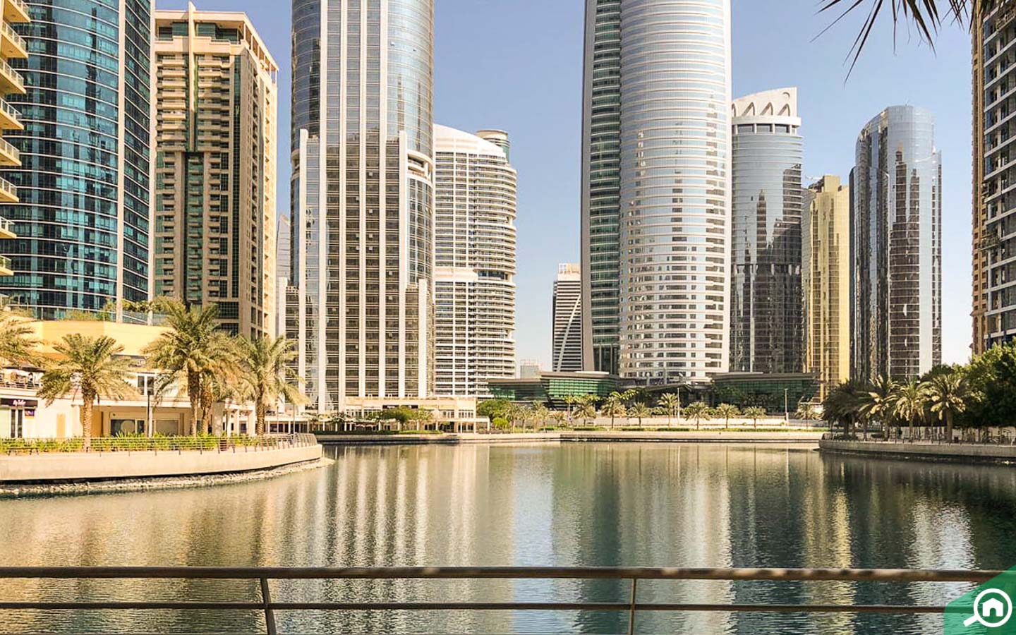 أما عن أبراج بحيرات الجميرا المعروفة أيضاً باسم جي ال تي، فتنتشر فيها 78 برجاً موزعة على 26 مجموعة سمّيت كلّ منها وفقاً لحروف اللغة الإجليزية من A إلى Z. يسهل على سكان هذه المنطقة الوصول إلى المطاعم والمؤسسات التعليمية والمراكز الطبية والوجهات الترفيهية وغيرها الكثير. تتميز المنطقة بمحاذتها شارع الشيخ زايد الذي يربط العديد من المناطق ببعضها في الإمارة.