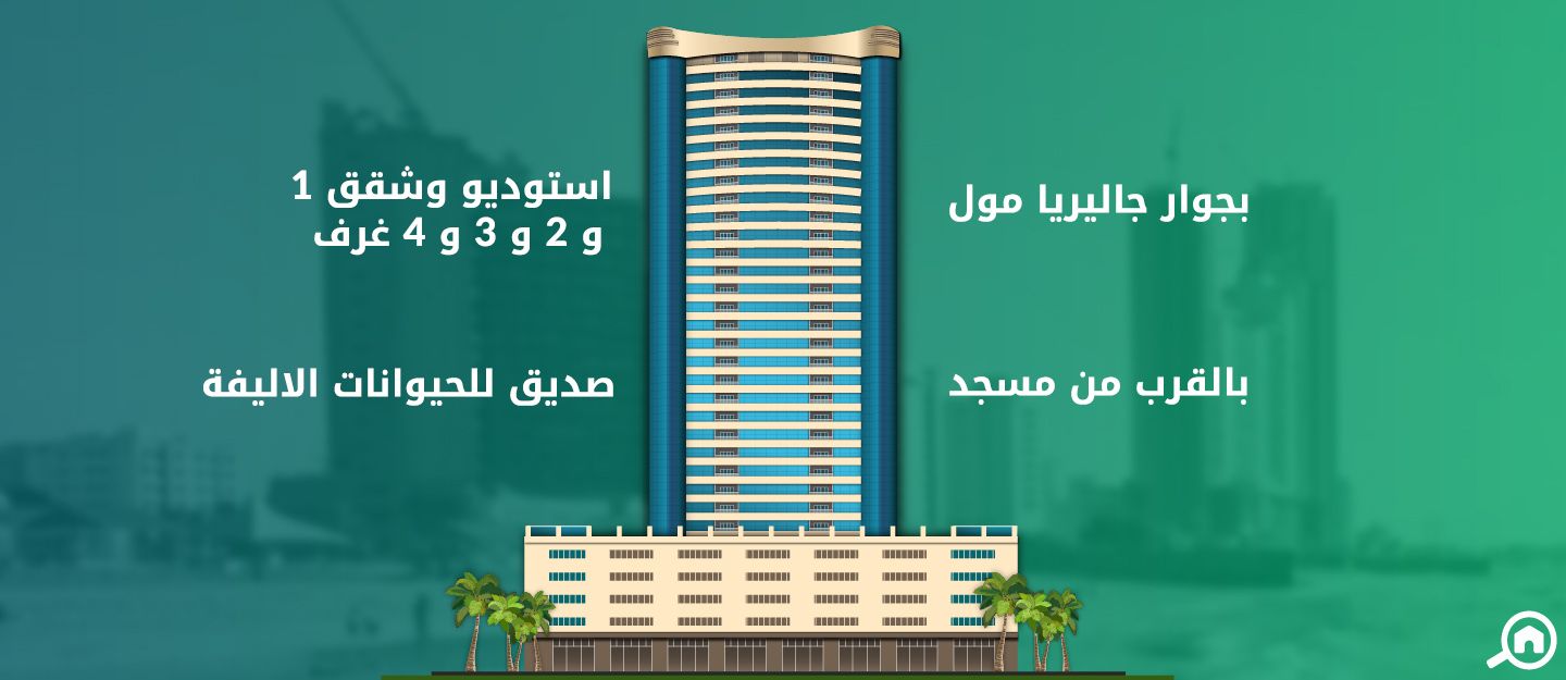 يقع البرج بجانب غاليريا مول وبالقرب من المطاعم ومحلات السوبر ماركت ومواقف الباصات التي يمكن الوصول إليها مشياً على الأقدام.