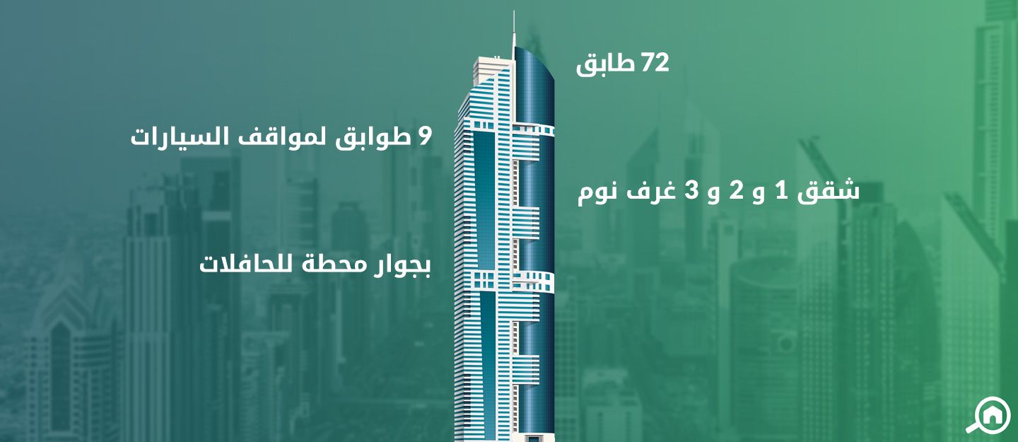 خصص لكل شقة حسب مساحتها عدداً معيناً من السيارات في موقف البرج المكوّن من سبعة طوابق.