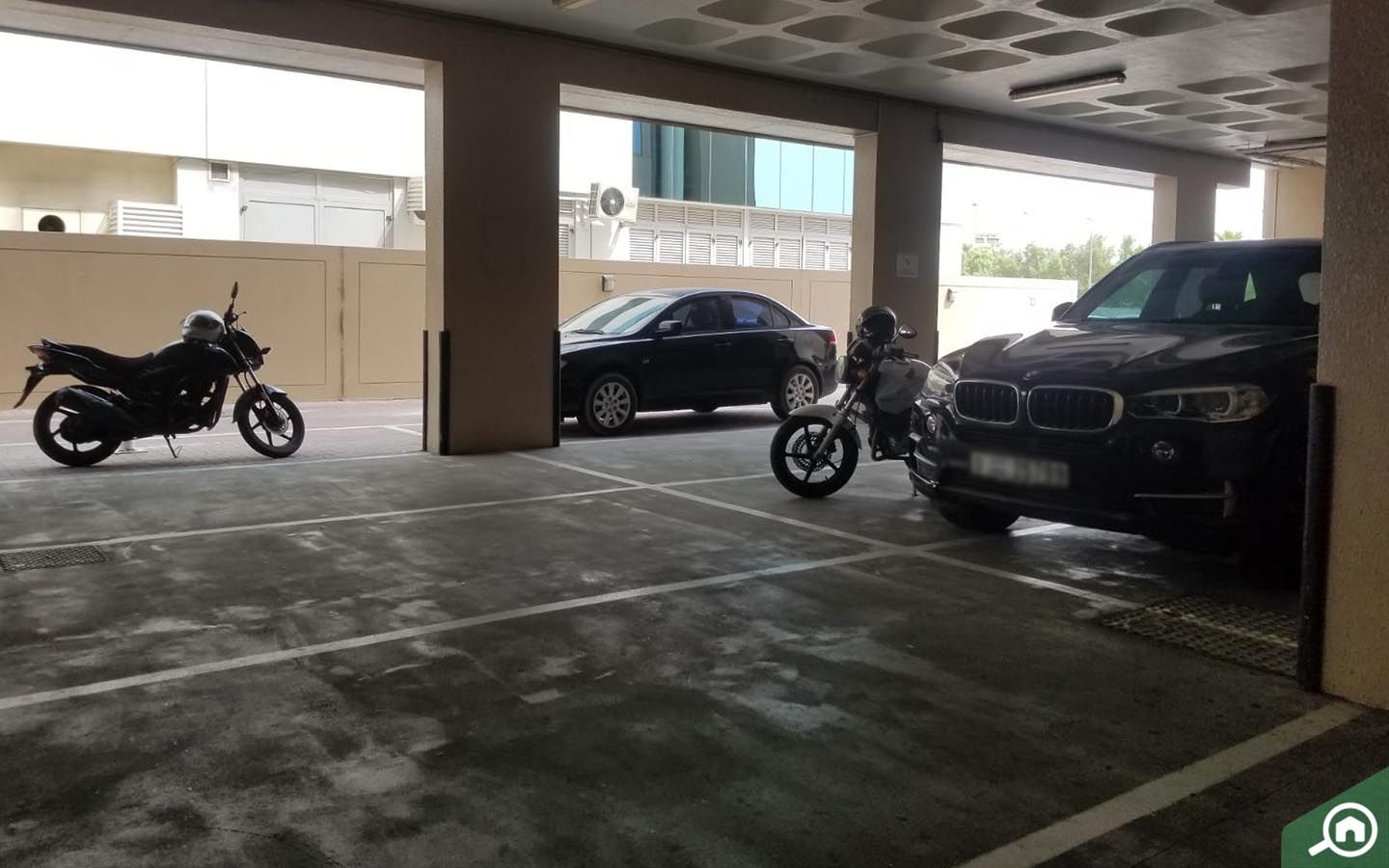 يستطيع الموظفون صف سياراتهم في موقف البناية، بينما يمكن للزوار صفها في الشارع.