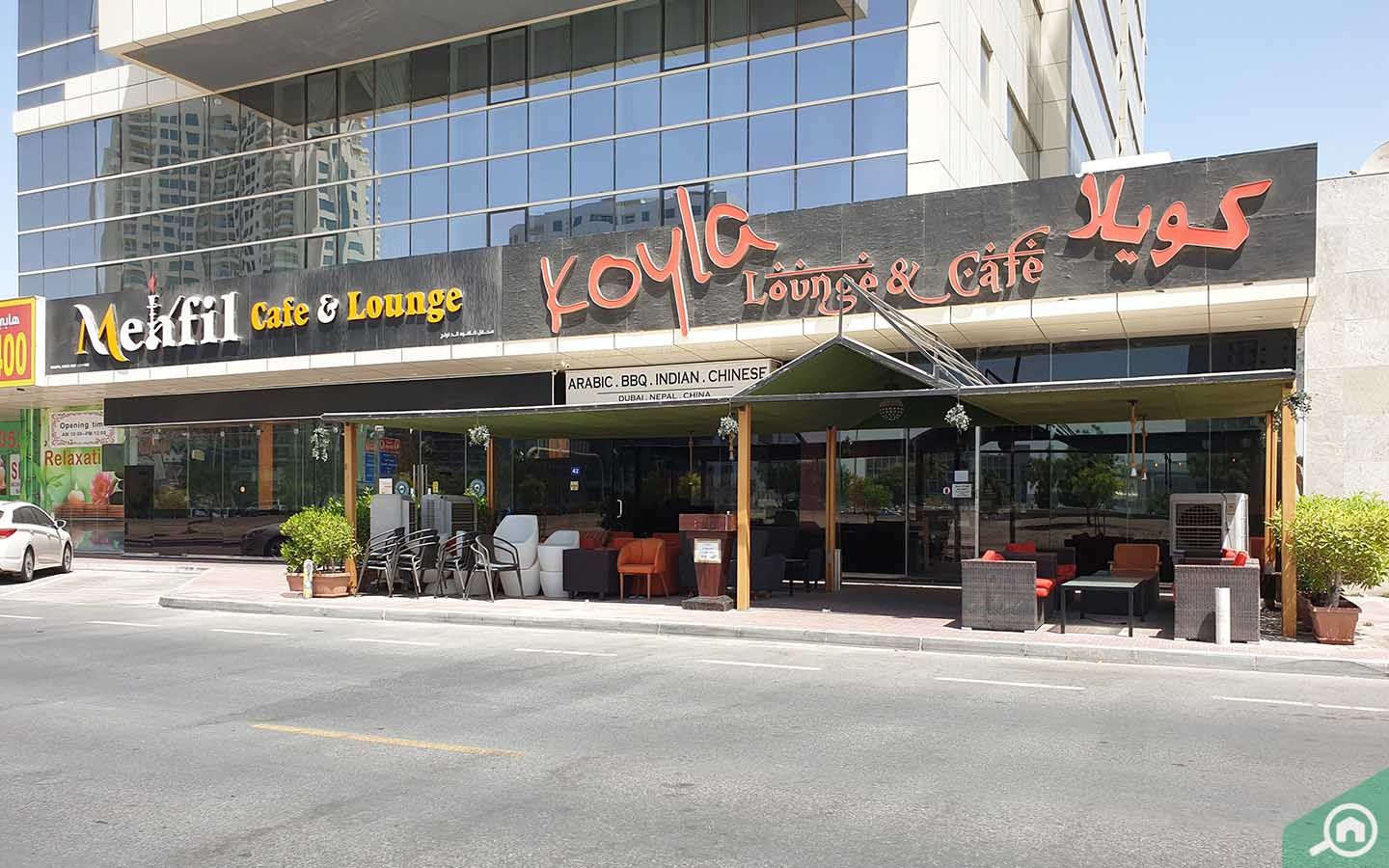 يتميز كويلا لانجي آند كافيه بأجوائه المستوحاة من بوليوود، ويعد مكان مناسب لتدخين الشيشة أثناء مشاهدة مباريات الكريكيت برفقة الأصدقاء. يقدم مطعم مياه بهاي وصفات وأطباق من جنوب آسيا، ويشتهر بطبق البرياني بلحم الضأن. يقصد الزبائن مطعم كباب كراتشي لتذوق سندويشات الكباب وأطباق شابلي كباب وكباب شامي المميزة.