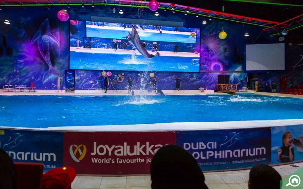 أما مجمع دبي دولفيناريوم الترفيهي، فيقع على بعد 9 دقائق بالسيارة، وهو وجهة ترفيهية مغلقة فريدة من نوعها، تقدم لزوارها أروع عروض الدلافين والفقمات.