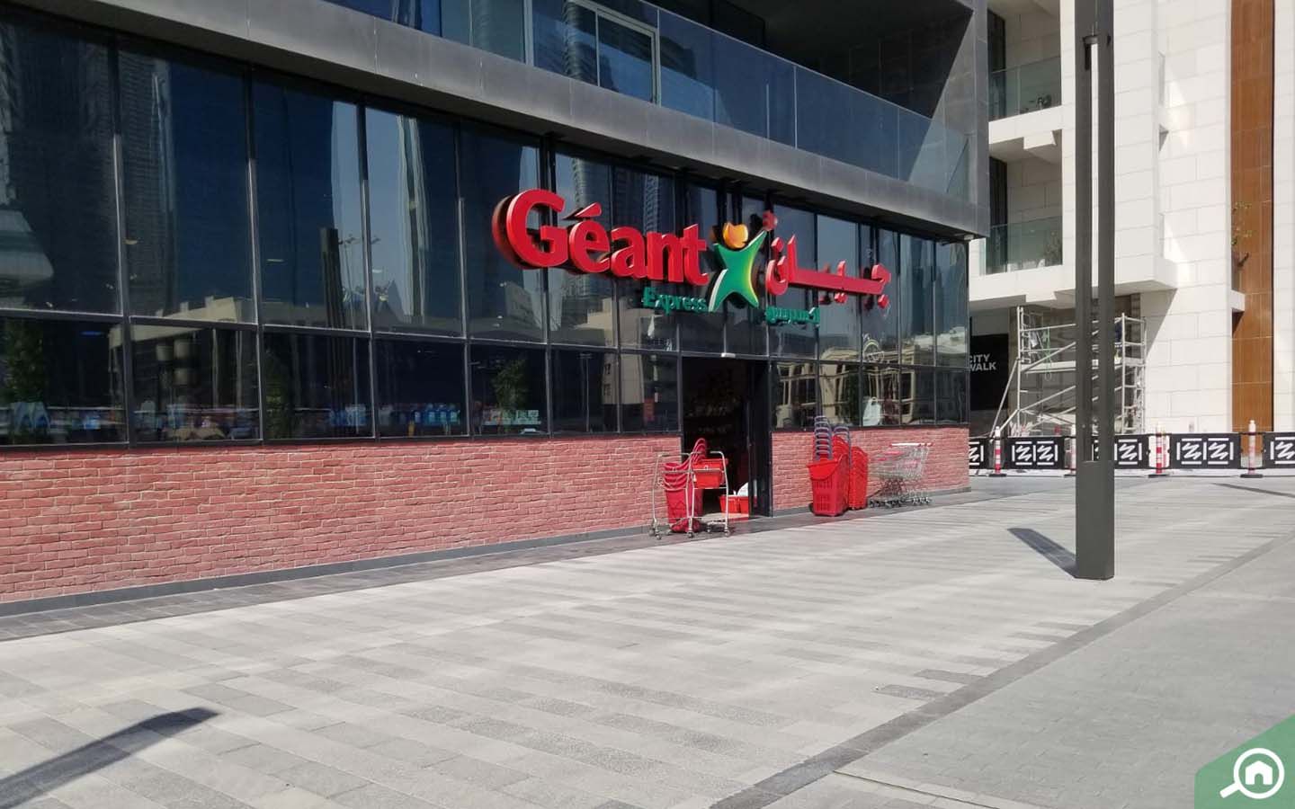 يحتضن المبنى في الطابق الأرضي متجر جيان إكسبريس حيث يمكن للسكان شراء جميع مستلزماتهم، وإضافةً إلى ذلك، تقع مجموعة من المتاجر الشهيرة في المنطقة المحيطة بالبناية، مثل: