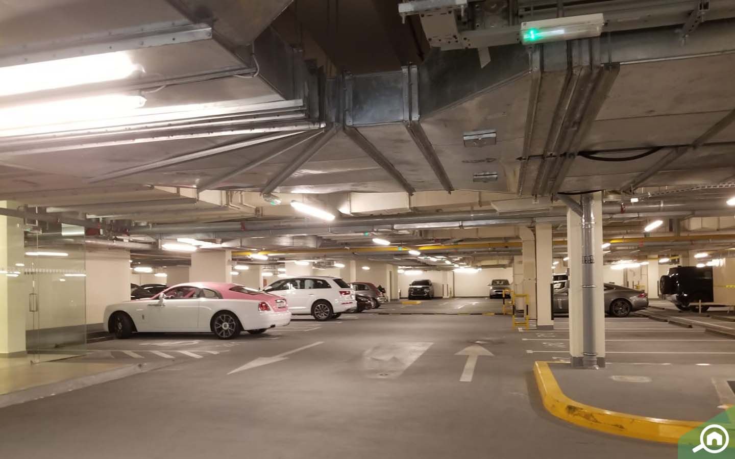 يُخصص للمقيمين عدد من مواقف السيارات في الطوابق السفلية، بينما يمكن للزوار صف سياراتهم في الشارع.