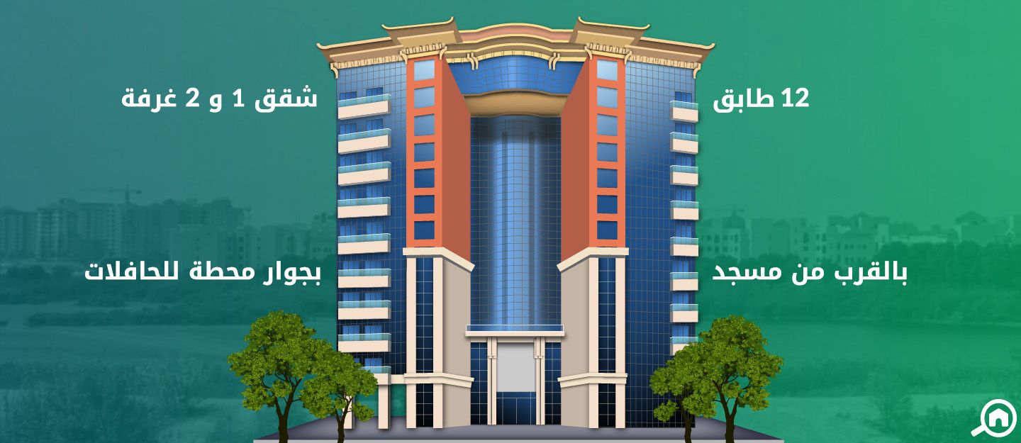 يشتمل مبنى روفى جاردنز على شقق استوديو وشقق غرفة صالة وشقق غرفتين وصالة. يتكون برج ترافلجار من 11 طابقاً ويضم شقق استوديو وشقق غرفة وصالة وشقق غرفتين وصالة. يتكون برج جلوبال جرين فيو 1 أيضاً من 11 طابقاً، ويجدر بالذكر أنه يقع في منطقة مركز الأعمال في المدينة العالمية.