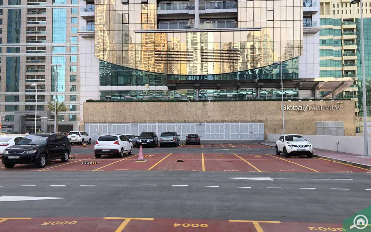 يتميز برج جلوبال ليك فيو بقربه من المراكز التجارية والمطاعم ومحلات السوبر ماركت، ولكن تجدر الإشارة إلى صعوبة عثور الزوار على مواقف سيارات في أبراج بحيرات الجميرا نظراً للأعداد الكبيرة من السكان والسياح الذين يزورون المنطقة.