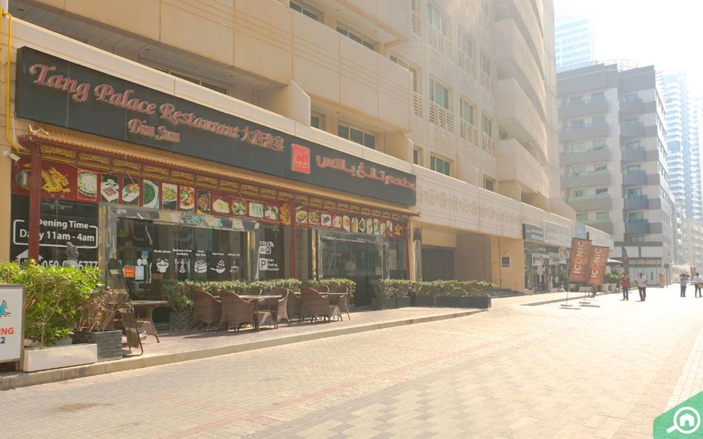 يضم ذا ووك في جي بي ار مجموعة واسعة من المطاعم، ويقع على بعد بضع دقائق.تشمل المطاعم الفاخرة القريبة من البرج ما يلي: