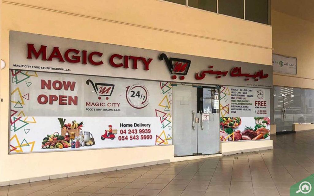 يقع سوبر ماركت ماجيك سيتي في الطابق الأرضي من البرج، مما يوفر للسكان فرصة التسوق بسهولة دون الحاجة لمغادرة البرج. لخيارات تسوق أشمل؛ يمكن للسكان التوجه إلى أحد محلات السوبر ماركت القريبة والتي تشمل الآتي: