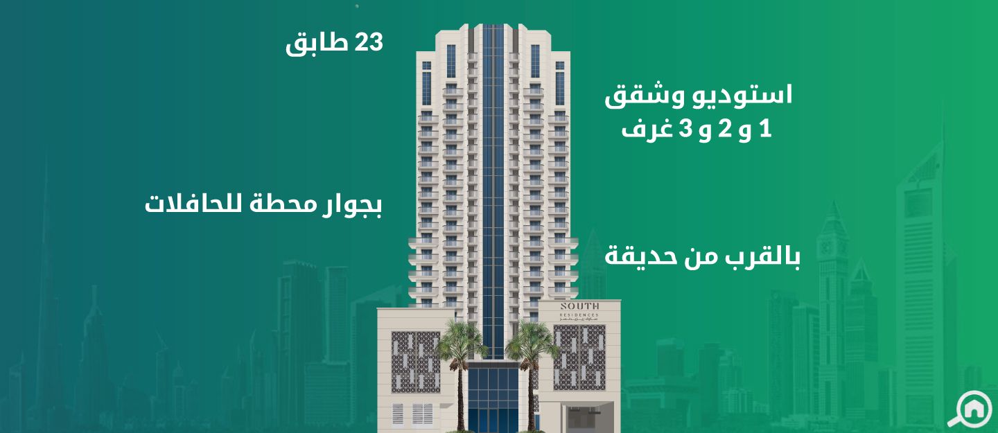 ساوث ريزيدنسز هو مبنى سكني شاهق الارتفاع يتكون من 23 طابقاً، ويوفر مجموعة من الوحدات السكنية، إلى جانب العديد من المرافق، بما في ذلك صالة ألعاب رياضية ومسبح ومنطقة لعب مخصصة للأطفال، ويعد صديقاً للحيوانات الأليفة.